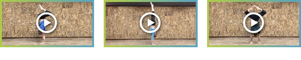 Collage of 3 Video thumbnails of coach Kyle Weiger doing handstand for Elite Foundation