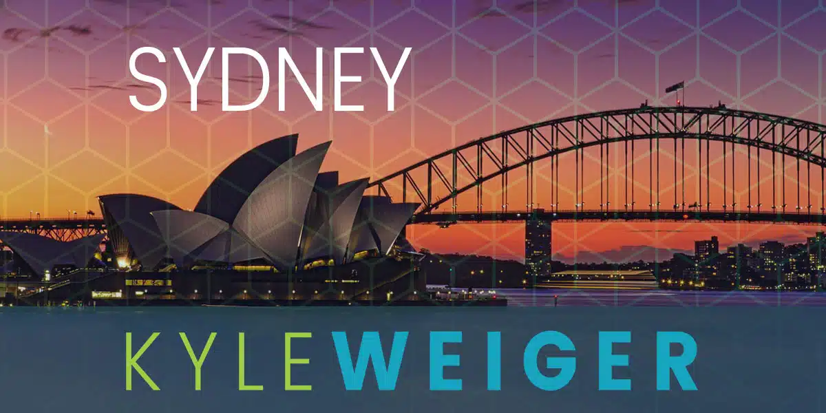Coach Kyle Weiger's Event Graphic Cover with Sydney's city lights, opera house and bridge, and honeycomb pattern filter