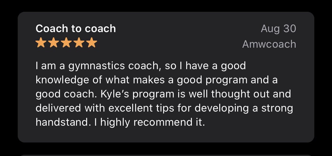 A Gymnastic coach positive rating on coach Kyle Weiger's Handstand App