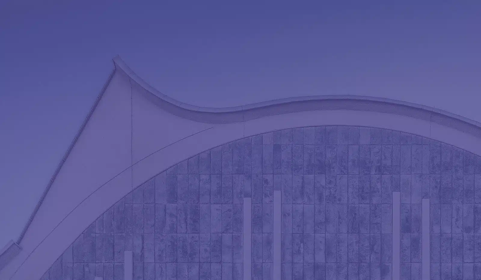 Curved roof gutter and tiled wall with blue filter